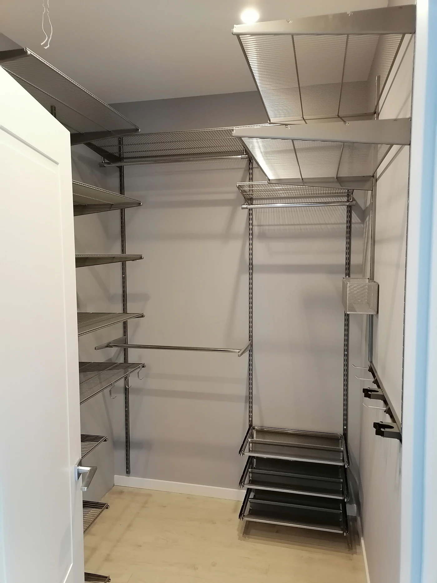 Дивитися фотографії- Гардеробна система Elfa – це не просто меблі для зберігання, а інноваційний підхід до організації простору. Наші клієнти вже оцінили її переваги, і тепер ви можете побачити реальні приклади гардеробних Elfa у різних приміщеннях: гардеробні кімнати, шафи-купе, пральні, гаражі, кухні, комори, дитячі кімнати та багато іншого.